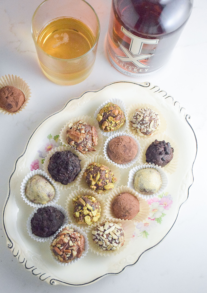 If life is like a box of chocolates, then this is no ordinary life, because with these Chocolate Whiskey Truffles, you know exactly what you are getting! I kept toying with whether it would be better to give these truffles as gifts or if I should serve them at a party. In all honestly, neither one of those has happened yet because I hoarded these all to myself!