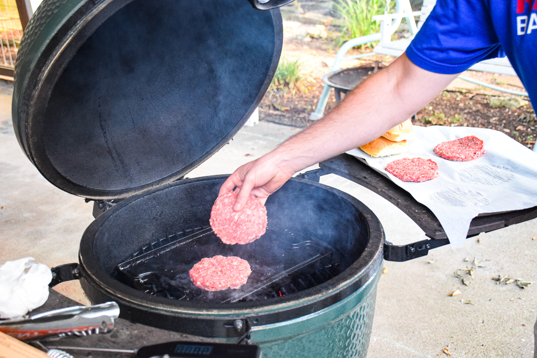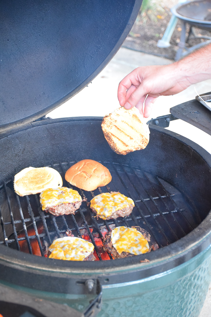 6. Grill vs Griddle- As I said in step 2, we are griddle fans and here is why. With a griddle, you can smash down the patty, getting it just a touch crispy on the outside, keeping it moist in the middle and cooking it quickly. We use our griddle on the Big Green Egg, so you’re still getting all the smoke flavor. Win-win.
