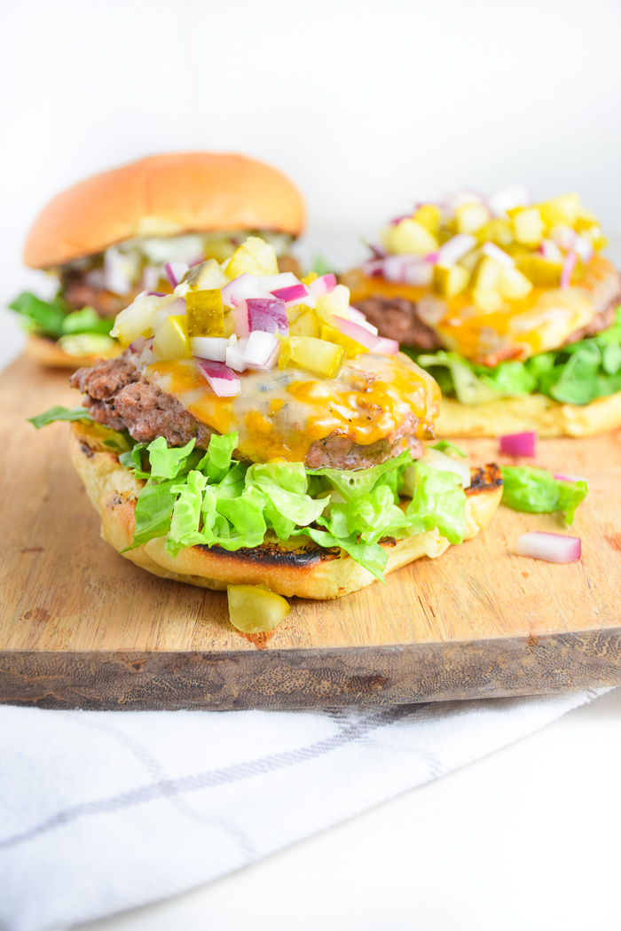 4. Temperature: This is where your meat thermometer comes in. I know a lot of people like to have their burgers rare and I used to be this way. But after a bout of food poisoning I’ve changed my tune. I still like my steak on the rare side, but ground meat is a totally different game. Make sure you cook your beef patties to 165 F.