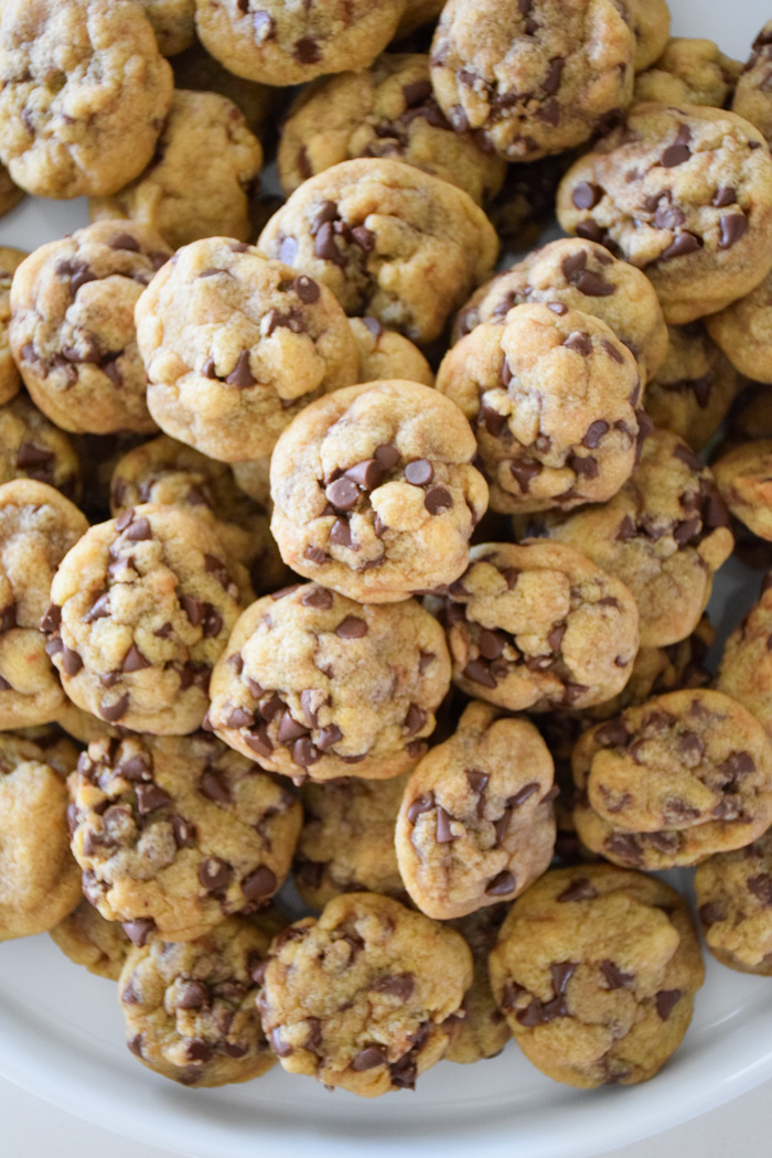 2. Mini Chocolate Chip Cookies– If I was positive this whole thing would blow over in a week, I’d make the big version of these cookies. But since we aren’t sure how long this will last, Mini Cookies seem so appropriate. These little morsels taste and bake up just like the big bakery cookies but are small enough you can enjoy one or two throughout your day.