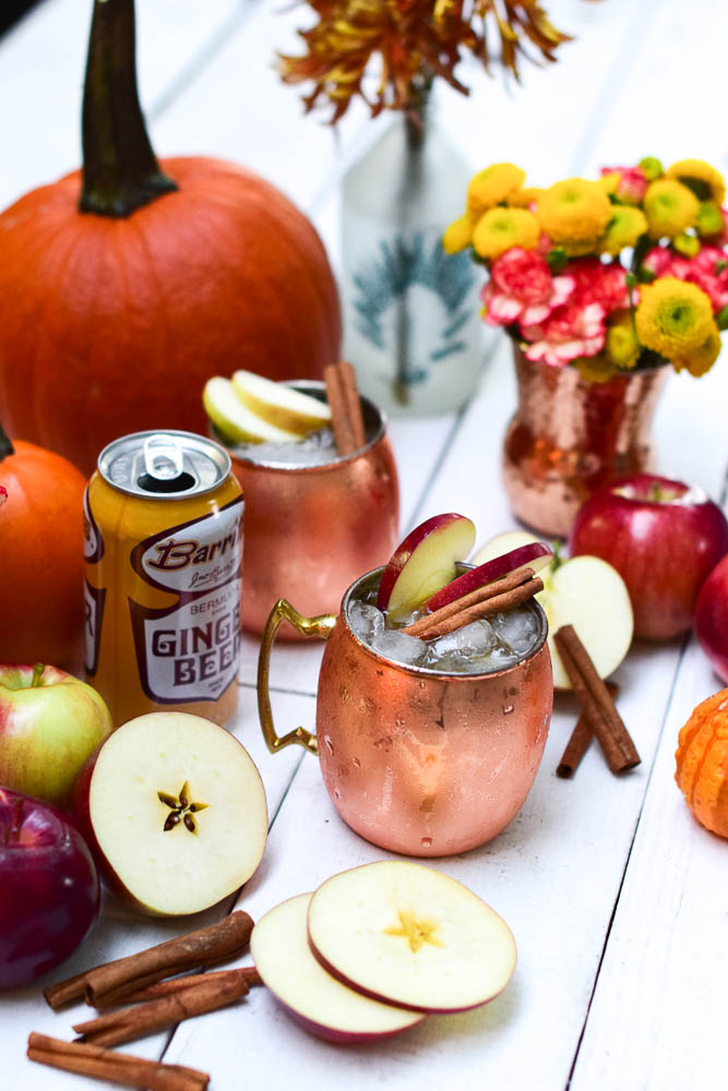 I used this as an excuse to set up the cutest table ever. I went over board with apples and cinnamon and copper. It’s the little things y’all that make me so happy! The ginger beer adds a good kick without being too sweet and has a nice amount of carbonation to keep it refreshing. It’s the perfect way to cheers the season!