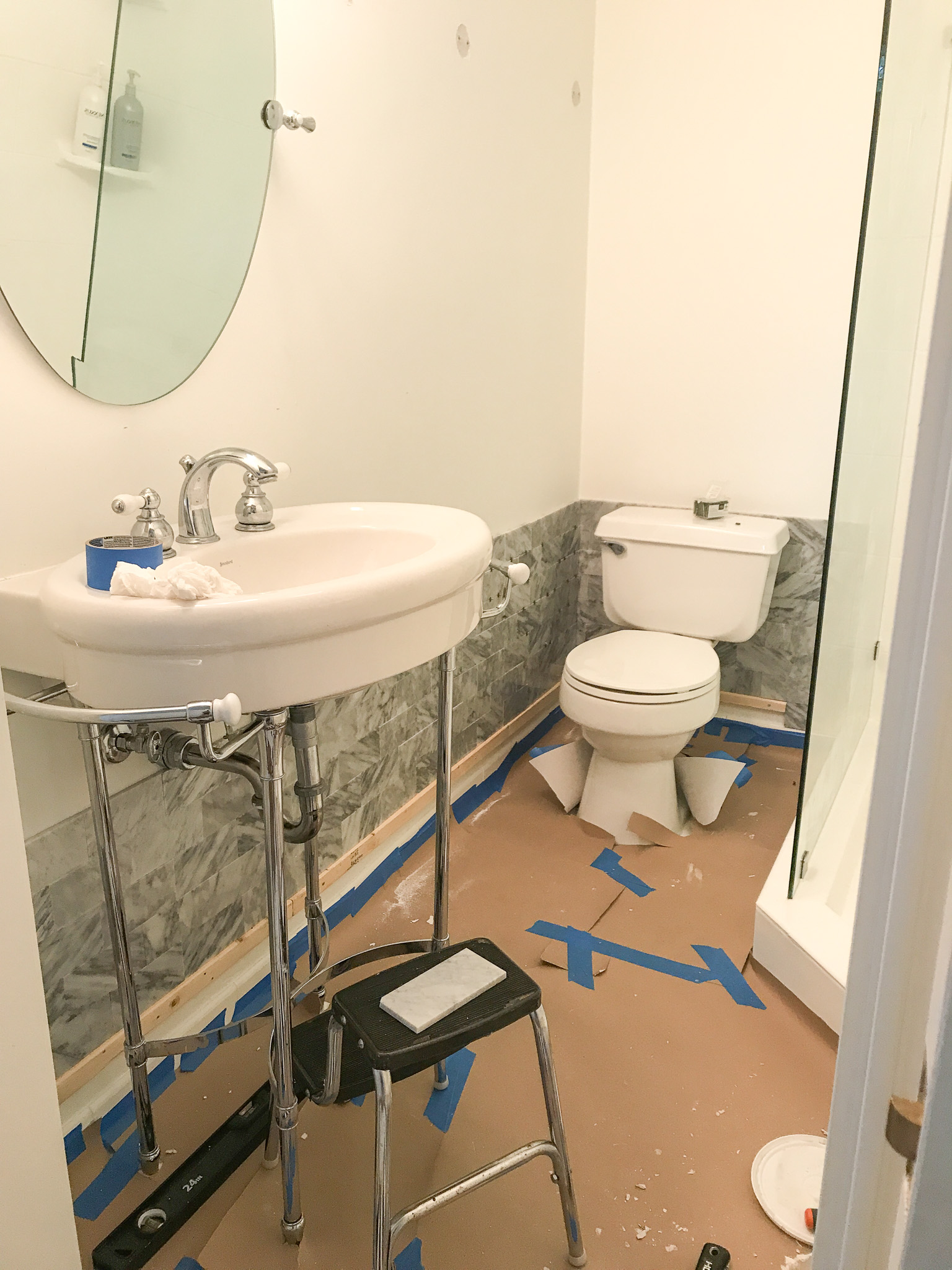 In the future we are planning a huge overhaul of the house so I knew I didn’t want to sink thousands of dollars into retiling or massively reworking the space. I just wanted to make the best of what we had and have it be something we could do ourselves without hiring a contractor. We definitely took the weekend warriors title to heart haha!
