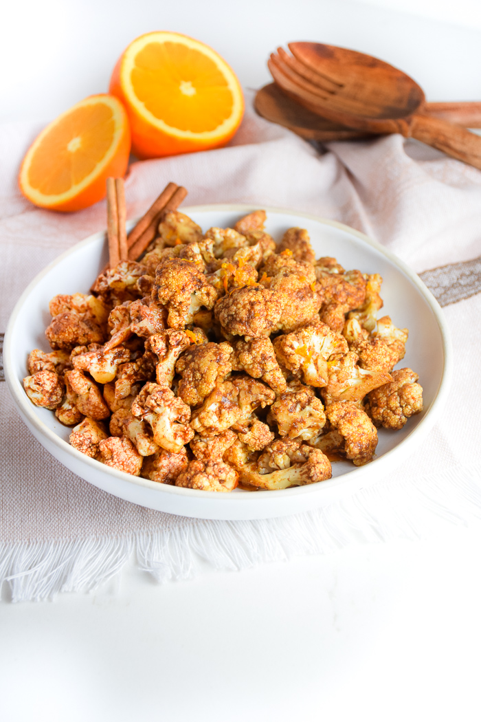 It’s never too early to start thinking about Thanksgiving sides! And let’s be honest, my favorite part about Thanksgiving dinner is definitely the sides. Cauliflower is a super versatile vegetable and lends itself well to the holiday table. From Mashed Cauliflower Potatoes to a Whole Roasted Cauliflower, this veggie seems to always make its way to my table. This year, I wanted to spice things up a bit and this Cinnamon Spiced Cauliflower is the perfect autumnal side!