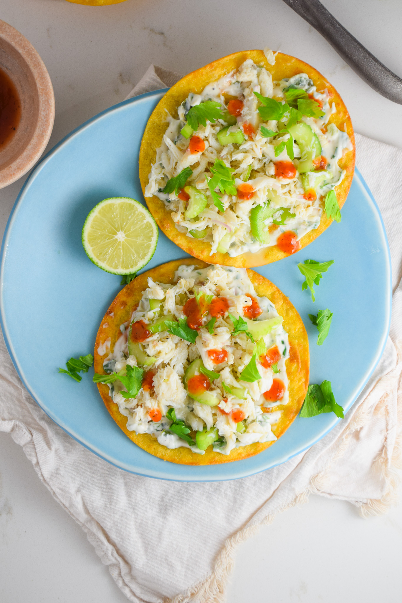 Who else is craving an island escape? I know I am! This dish reminds me of all the fresh, light seafood dishes you can find at a breezy beach shack somewhere. One of the reasons I like these crab tostadas so much is that they are light but still satisfying and full of flavor.