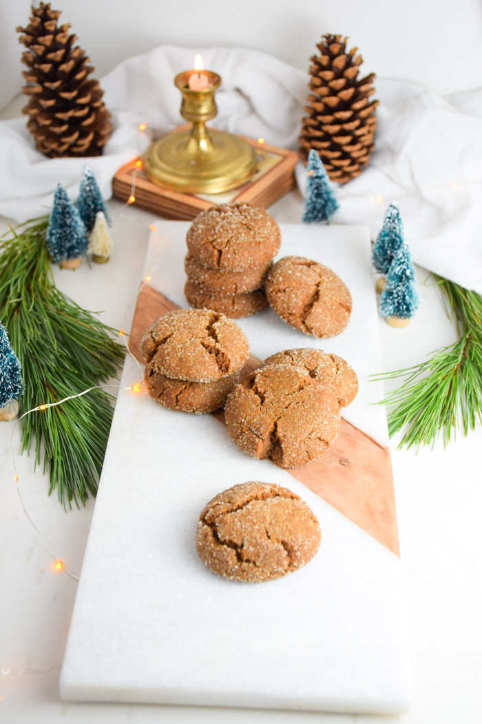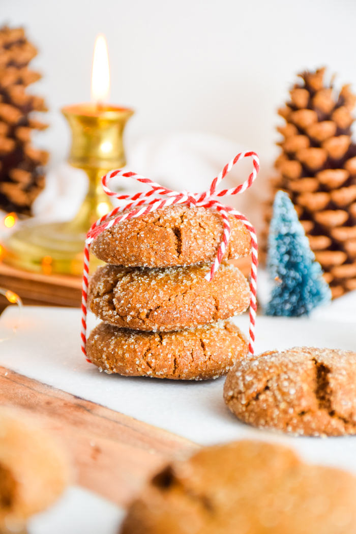 Are you a Gingersnap fan? The holidays are the only time of year that this flavor is around so I like to take advantage and enjoy it while I can! I’ve love this Soft Gingerbread Cake and you can’t go wrong with Gingerbread Cinnamon Rolls on Christmas morning! Gingerbread has a lot of those same warming spices but the Gingersnap has a little something extra! Maybe it’s the extra ground ginger or the black pepper or pinch of cayenne or possibly the snap from the crunchy outside of the cookie! But there’s something about a Gingersnap cookie that I just love.