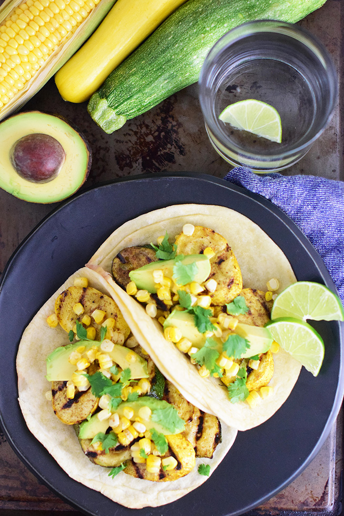 Grilled Zucchini and Corn Tacos are a delicious, vegetarian taco recipe! They are so easy to make and a definitely crowd pleaser even with kids!