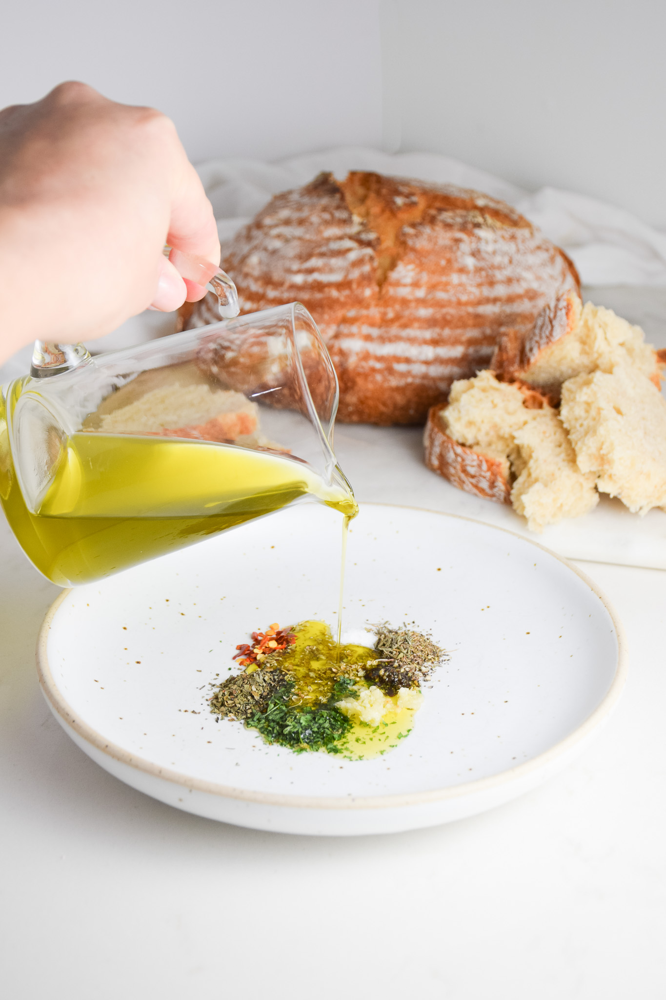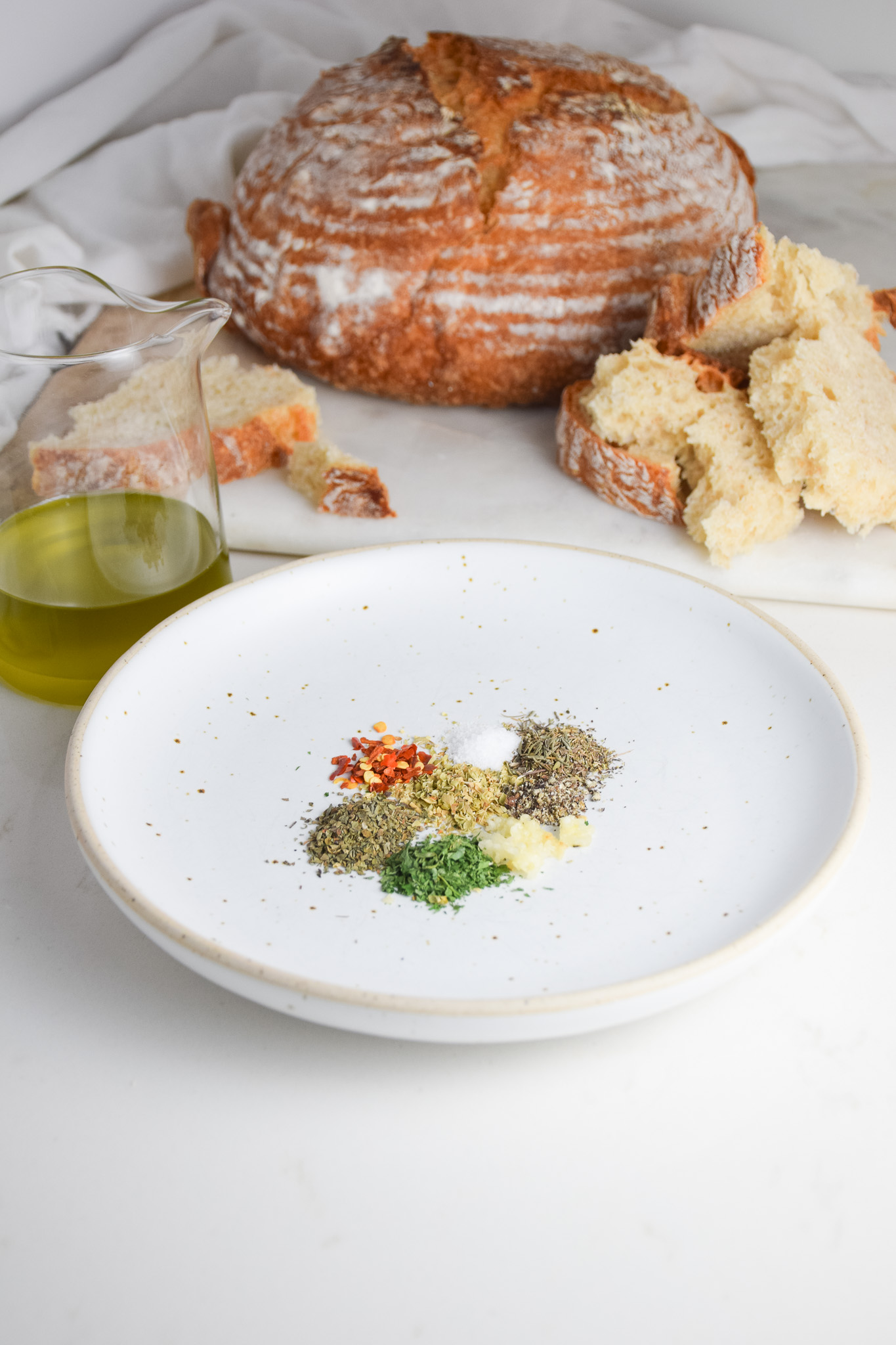 Good bread and good olive oil… could there BE any better combination? Possibly but my guess is you’d be hard pressed to find one. I love a good appetizer but sometimes they are just so much work. Ya know what I mean? It’s like making a whole other meal and well, who has time for that? This appetizer takes literally seconds to make with a few dried herbs. That’s it. So simple. So easy. So delicious. It’ll up your dinner at home experience without spending any extra time in the kitchen. Now that’s a win!