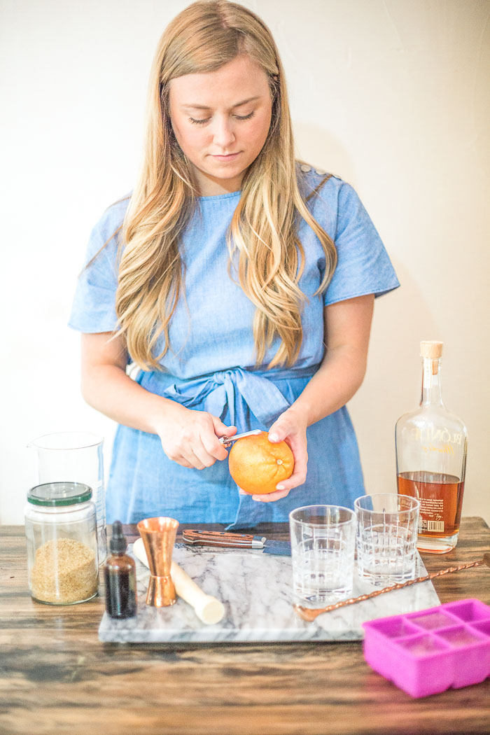 First things first, make sure to always use filtered water. For both the muddling agent and for the ice cubes. Nothing like some nasty tap water to mess up your flavor profile! Another pro tip, be sure to wash the orange on the outside. If you’re going to use an orange peel, make sure it’s clean!