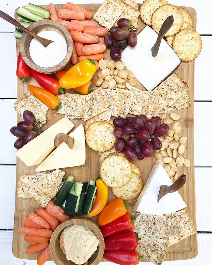 - Add crackers like rice crackers, wafers, sourdough crackers, nuts + seeds crackers