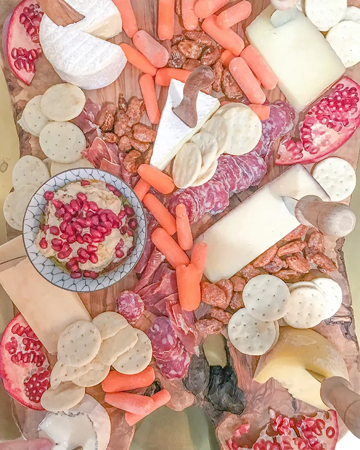 Rice crackers and pomegranates really upped the ante on this cheeseboard! Here is the recipe for my Holiday Hummus!