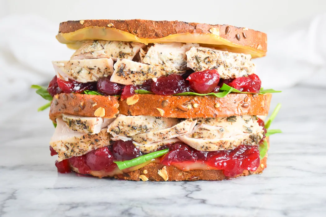 - Add a layer of greens to a toasted pieces of bread, then a layer of cranberry sauce, then add the turkey. Place the Moist Maker on all of that, then repeat the layers and top it off with the toasted bread.