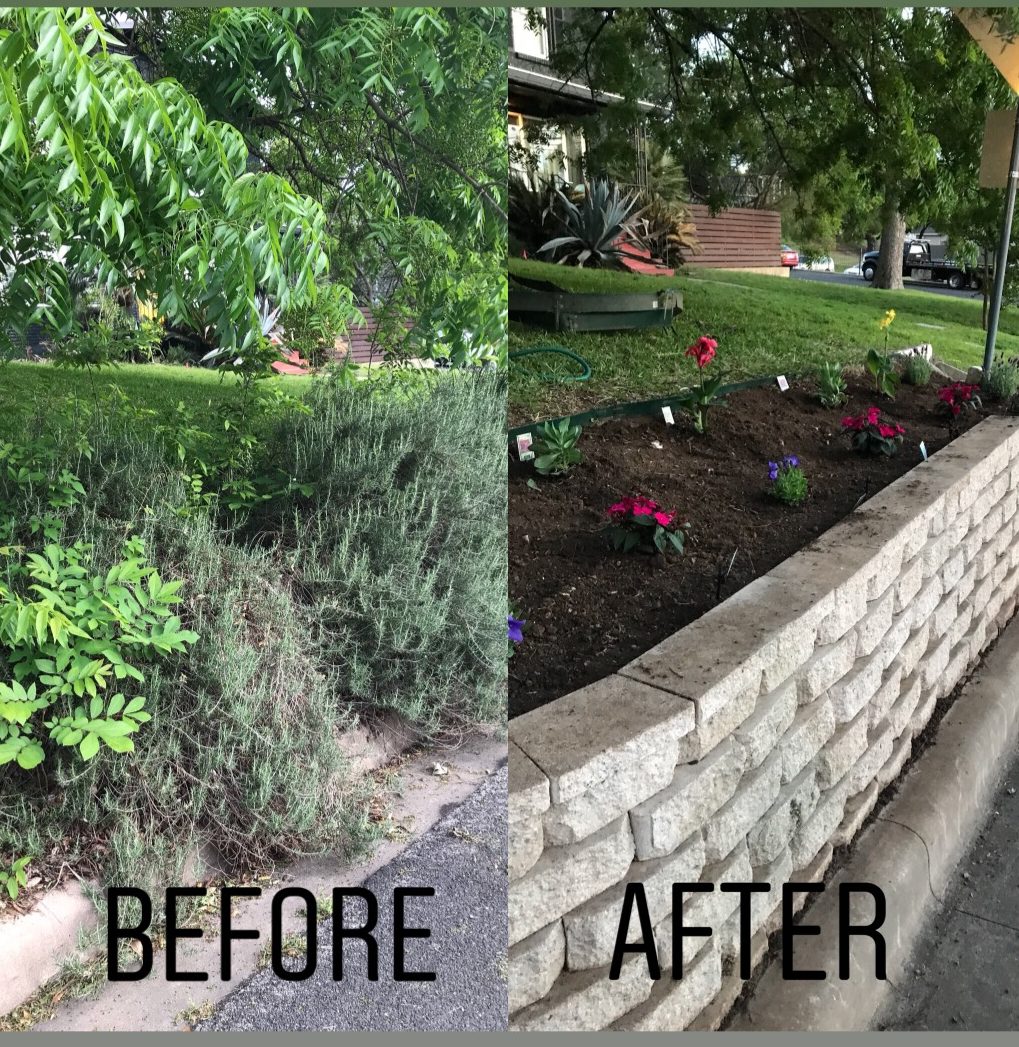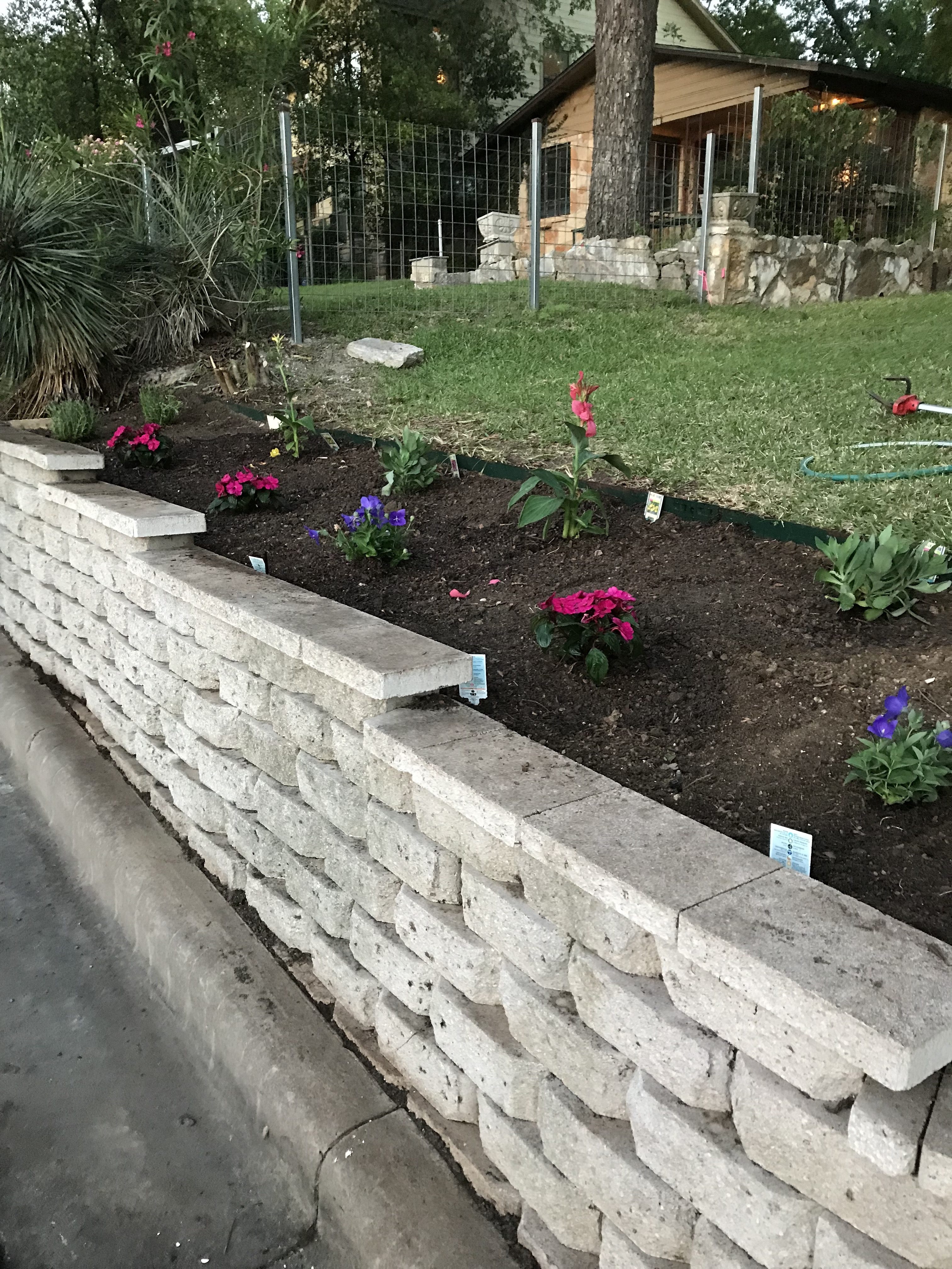 Step 4: We planted perennials like Canna Lily, Blue Balloons, Shasta Daisies and Lavender! I also sprinkled in a Texas wildflower seed mix that includes Bluebonnets and poppies and lots of other colorful flowering plants.