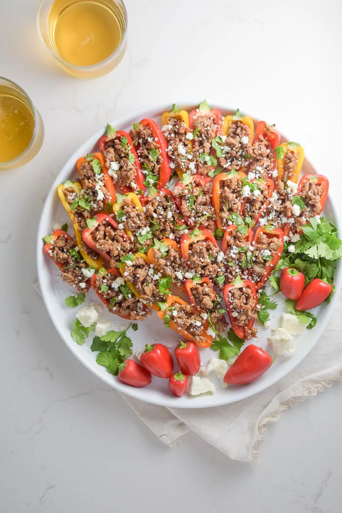 Sometimes when people ask me to describe the kind of recipes I like to make, I have a go-to answer of “stupid easy.” I know it sounds weird but we are all busy people and even though we like cooking, sometimes you just need a recipe idea that is so quick and simple. Ya know? Enter Sausage Stuffed Mini Sweet Peppers. This is a stupid easy recipe that you can whip up in less than minutes!