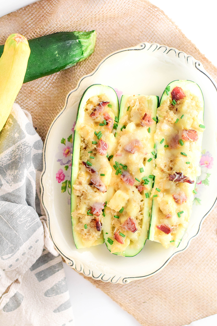 I originally made this post for Austin Woman in the October 2017 issue. There is always some challenge or twist for each recipe and this month the editor asked that I take recipes traditionally made with nightshade vegetables and replace them with other seasonally available produce. For this recipe, I chose the family-friendly stuffed bell pepper recipe to replace with stuffed zucchini boats! Same idea, take a veggie and stuff it will delicious ingredients and voila dinner! Zucchini is always a crowd pleaser for its mild taste and ability to pair well with lots of different flavors– like bacon! Have you made zucchini boats before? Let me know what you think!