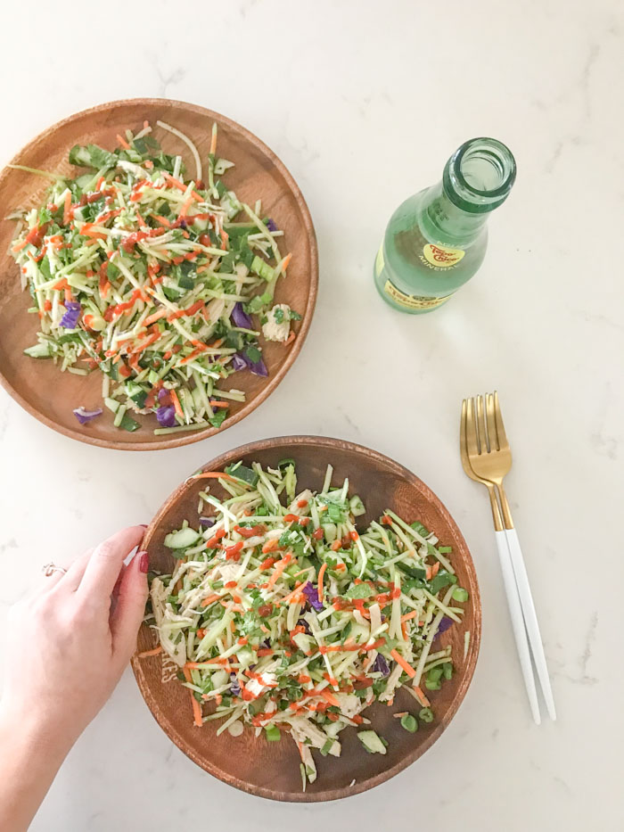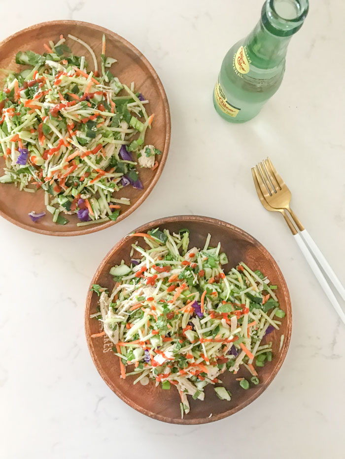 What’s even better is that these bowls, or salads, come together so quick thanks to a bag of pre-shredded broccoli slaw. I typically like to prep my own ingredients but pre-shredded slaw is one of those things that is just as good pre-made as it is fresh. Anything to make getting more veggies easier is something that I like!