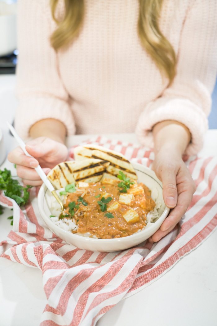 Tikka Masala might not be the most traditional Indian food recipe. If my memory is serving me well, Tikka Masala is actually an English Indian food dish. This creamy, tomato based sauce gets an upgrade with a few punchy spices. Served alongside a bed of long grain rice and buttery naan bread, this dish has all the makings of a perfect night cozied up watching Netflix.