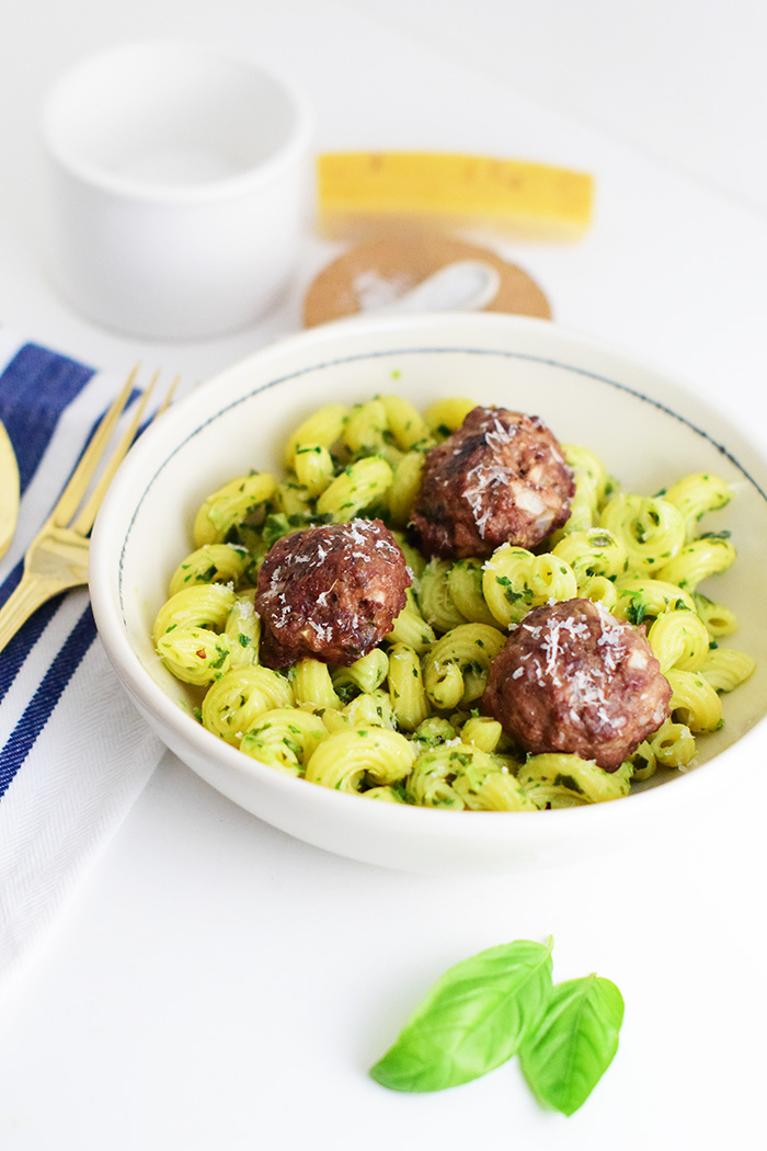 Venison Meatballs with Pesto Pasta